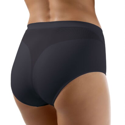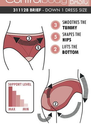 Shaping brief with tummy control. Moderate compression providing a medium level of support. Soft microfiber and silicon on the waist. Supports the bottom smooth the tummy and shapes the hips. Natural cotton gusset. Item comes packaged in a Control Body box.
