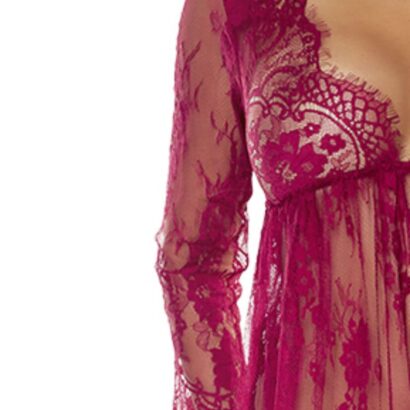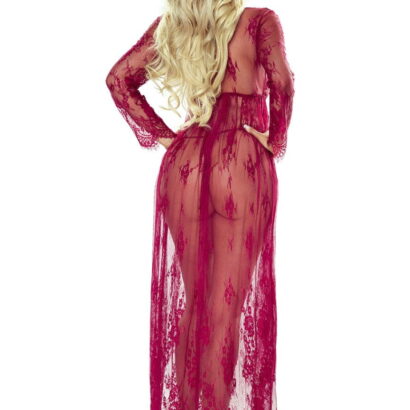 Stunning super soft elegant full length lacey robe and matching thong. Shaped cups delicate hem and shoulder design make this an eye-catching number! Soft light and delicate this robe is sure to make the wearer feel very special! Arrives packaged in a lovely Provocative box.