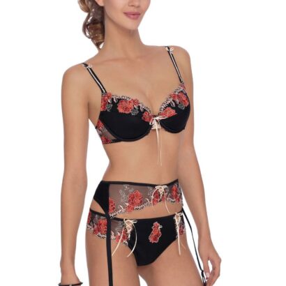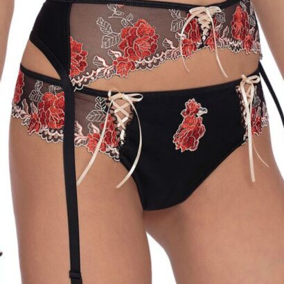 Natali is beautifully decorated in floral embroidery. Available in black (pink version also available). Item arrives packaged in its own Roza box.