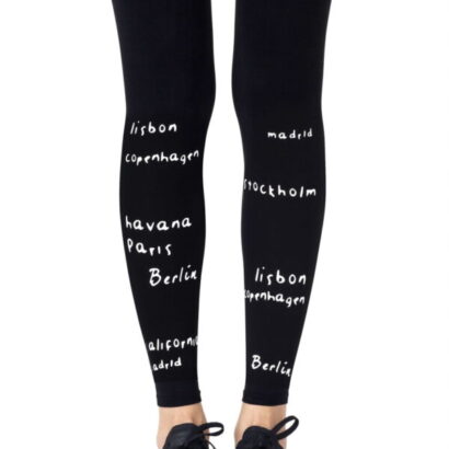 Oh the places you’ll go with these graphic tights that feature our favourite destinations. Pair these with ballet flats and begin the journey. Colour: Black tights with White print. Thickness: 120 denier. Unless they have X-ray vision no one will be able to see through these opaque tights. Tights that end at your angle and set your feet free. With an identical print on the front and back get ready for 360? visual impact. Hand print no two are the same.