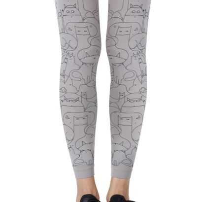 Be a proud feline lover with Cat Lady tights that feature an allover cat illustration and make your legs look ferocious. Colour: Light Grey tights with Black print. Thickness: 120 denier. Your entire leg will be getting Zohara love with allover prints. Both sides are not created equal with allover tights so please look at the foot of the tights before wearing to ensure you don’t step on the print. (The front print will be lower than the back.) Tights that end at your angle and set your feet free. Unless they have X-ray vision no one will be able to see through these opaque tights. Hand print no two are the same.