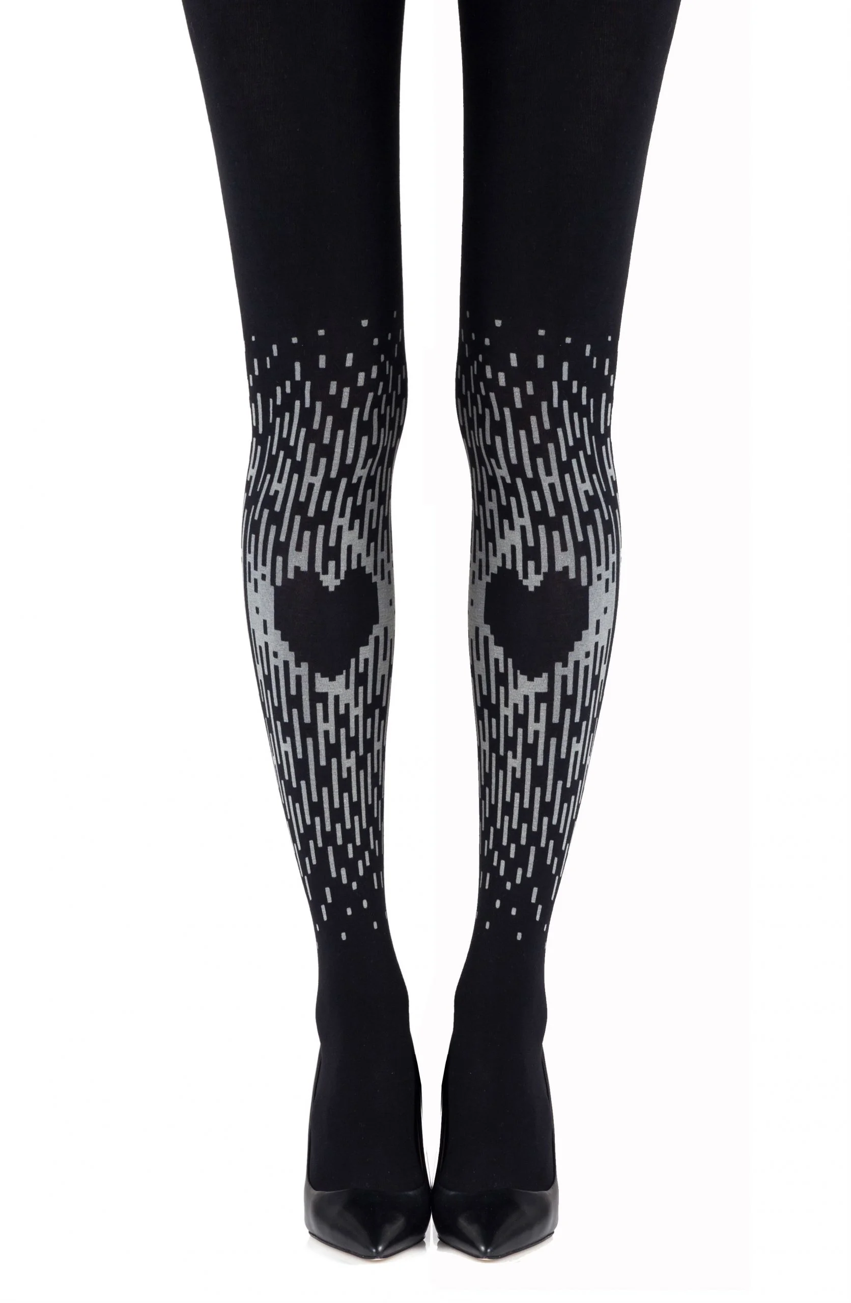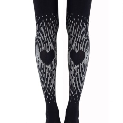 Love is all around with the Spread The Love tights that feature an emerging heart from an abstract graphic that is two-sided. We love actually. Colour: Black tights with Light Grey print. Thickness: 100 denier. Made from Cotton. Unless they have X-ray vision no one will be able to see through these opaque tights. With an identical print on the front and back get ready for 360? visual impact. Hand print no two are the same.