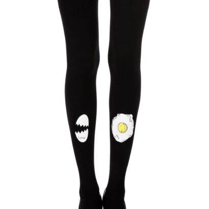 Sheer 20 denier skin color tights with a print that combines between the culinary and the fashion world. On one leg there is fried egg print and on the other leg an egg broken in half with the word LOVE. The print is on both legs and can be worn either at the front or at the back part of the legs.