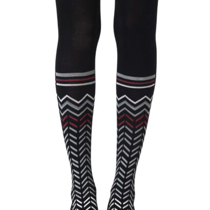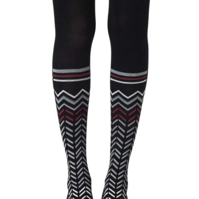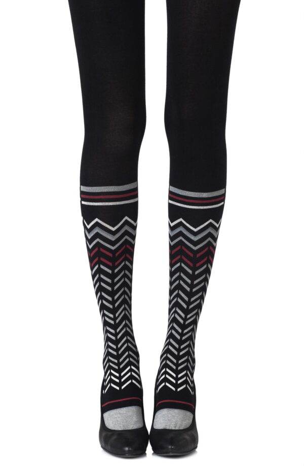 Feel Coachella vibes even in the winter with Zig Zag Walk tights. Featuring a sock-style zig zag print pair with your most fringey items. Colour: Black tights with Grey Burgundy print. Thickness: 100 denier. Made from Cotton. Unless they have X-ray vision no one will be able to see through these opaque tights. Get athletic with our two-sided knee-high sock-style print. Hand print no two are the same.